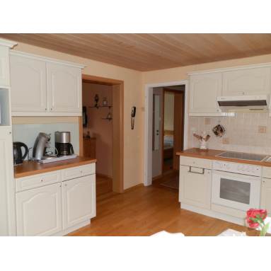 1 fully equipped kitchen - fitted kitchen with large dining table for 4 people,stove, oven, dishwasher, coffee maker, Senseo coffee machine, kettle and microwave.